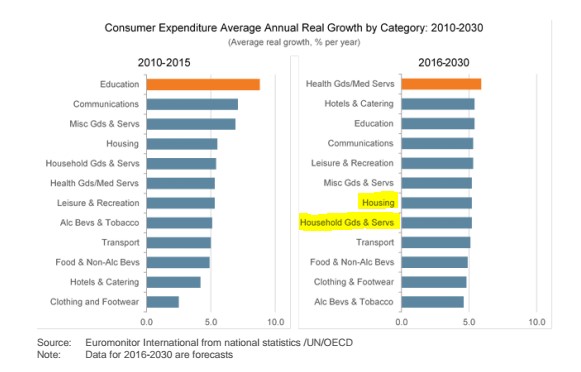Consumer expenditure in Indonesia on household goods and services is also forecasted to rise in the next 13 years.