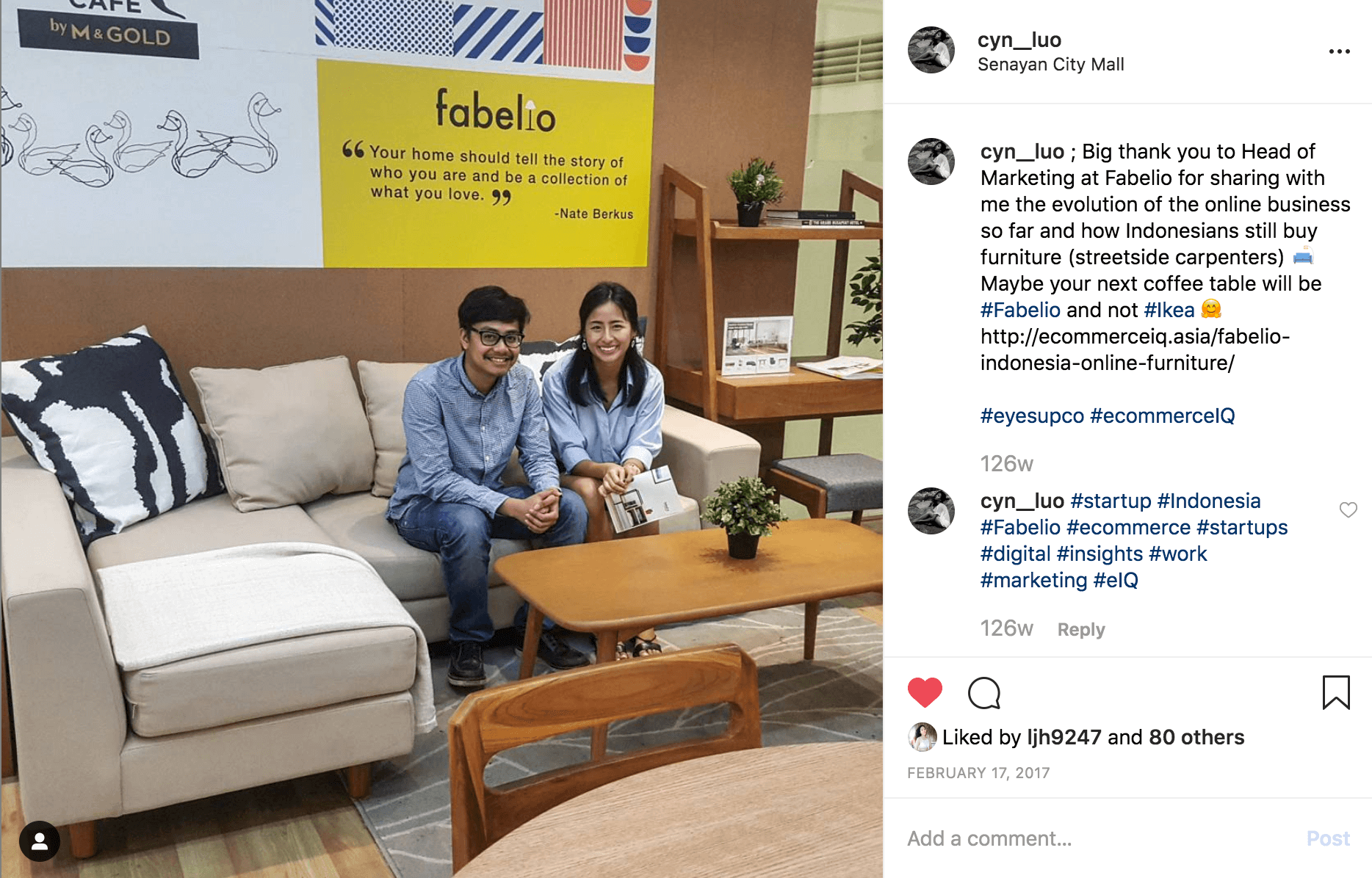 - Event sponsorships are important to reach the right audience, in Fabelio’s case, Indonesia housewives, who still have 78% influence over their spouse’s income. The company partnered with Femina Group, a popular magazine for women, to provide the furniture for its offline pop shop